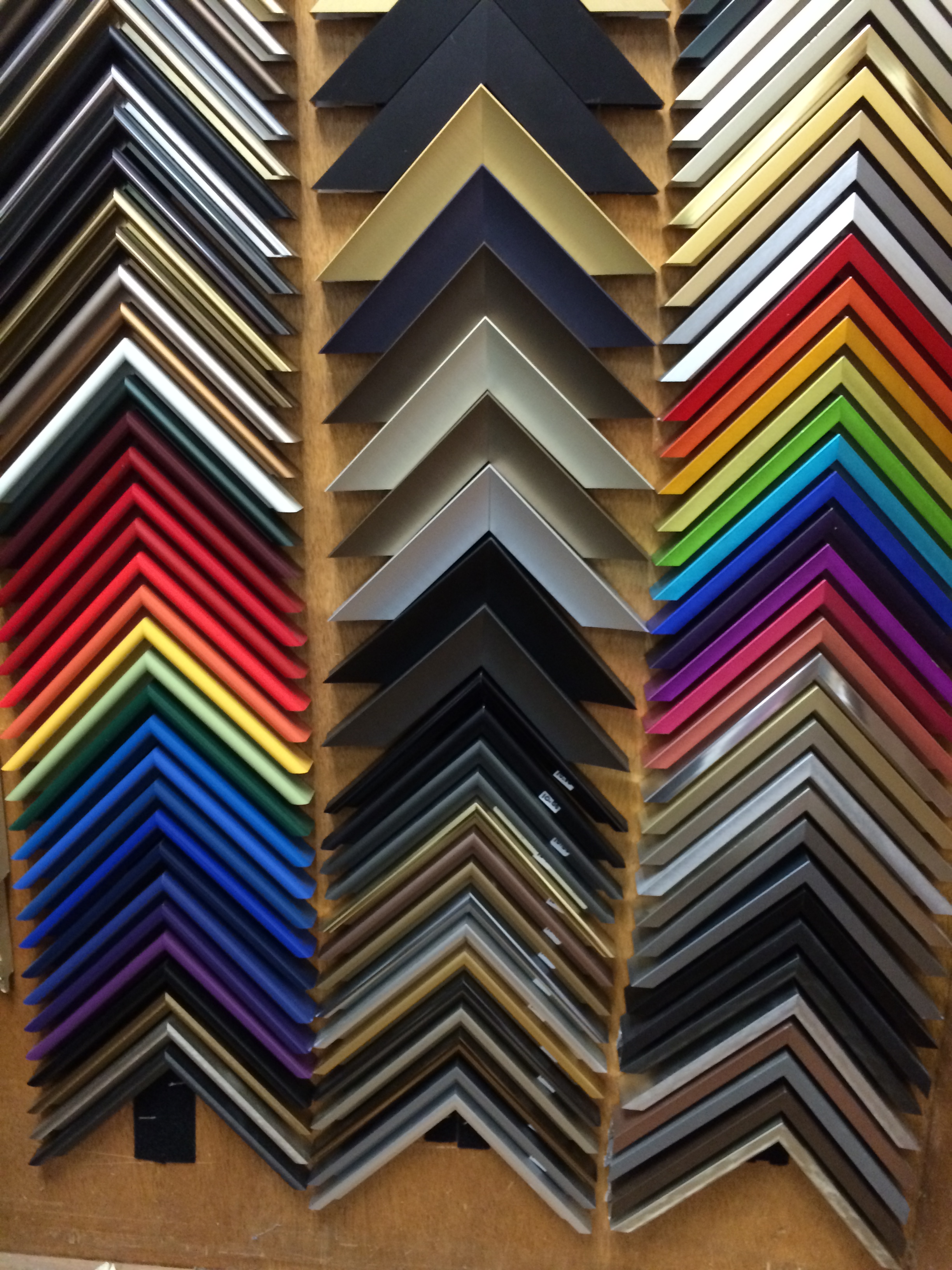 We carry frames from major distributors. Some companies we carry include, but are not limited to: Roma, Decor, Omega, Nurre Caxton, Nielsen, Studio, Rustic Creations, and more. We take pride in our selection and in the care we put into framing your artwork. All of our framing is done at our location, and the frames, glass and matboards are cut specifically to your needs straight from our stockroom.